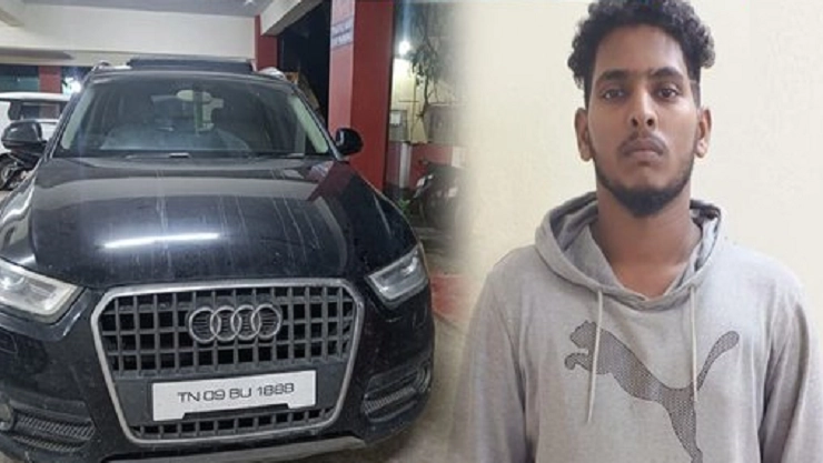 சென்னையில் உள்ள கல்லூரி மாணவர்களுக்கு ஆடி காரில் வந்து இளைஞர் ஒருவர் கஞ்சா விற்பனையில் ஈடுபட்ட நிலையில் அவரை கையும் களவுமாக போலீசார் பிடித்துள்ளனர்