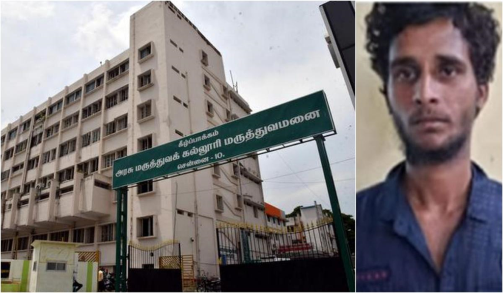 சென்னை கீழ்பாக்கம் அரசு மருத்துவக்கல்லூரி மருத்துவமனைக்குள் நாள்தோறும் நூற்றுக்கணக்கானோர் பல்வேறு நோய்களுக்கு சிகிச்சைப் பெறுவதற்காக வந்து செல்கின்றனர். இந்நிலையில், ஞாயிற்றுக்கிழமை இரவு மருத்துவமனை வளாகத்தில் ராணிப்பேட்டையைச் சேர்ந்த சதீஷ்குமார் என்ற இளைஞர் தங்கியிருந்துள்ளார்.