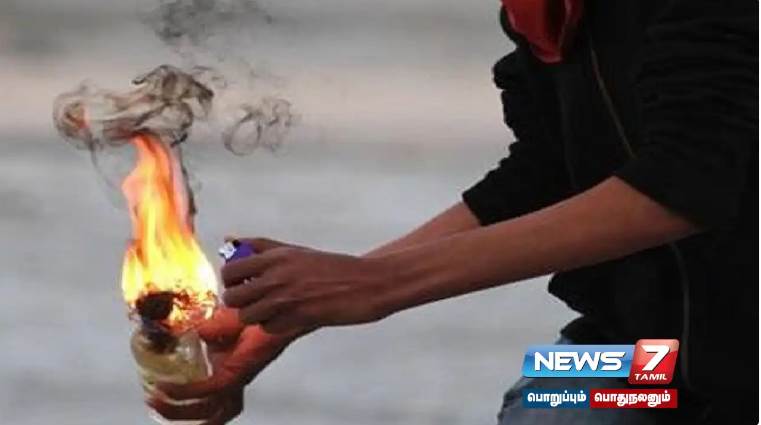 இதனை சிவா கண்டித்து அனுப்பியுள்ளார். அதற்கு அந்த நபர் கொலை மிரட்டல் விடுத்து விட்டு சென்றார். பிறகு நள்ளிரவில் அதே தெருவிற்கு வந்து சிவா வீடு அருகே பெட்ரோல் குண்டை வீசி விட்டு தப்பி விட்டார். சத்தம் கேட்டு பொதுமக்கள் வந்துபார்த்த போது அங்கிருந்த கோணிப்பைகள் கொளுந்து விட்டு எரிந்தது.