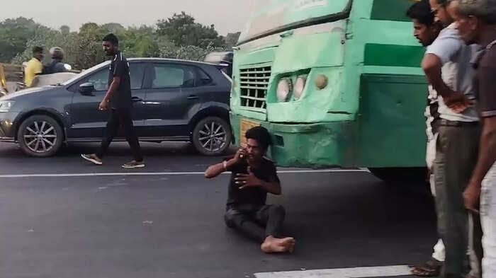 ஸ்ரீபெரும்புதூர் அருகே சென்னை பெங்களூர் தேசிய நெடுஞ்சாலையில் மது போதையில் வாலிபர் ஒருவர் திடீரென அரசு பேருந்து முன்பு அமர்ந்து சாலை மறியலில் ஈடுபட்டதால் பரபரப்பு ஏற்பட்டது.