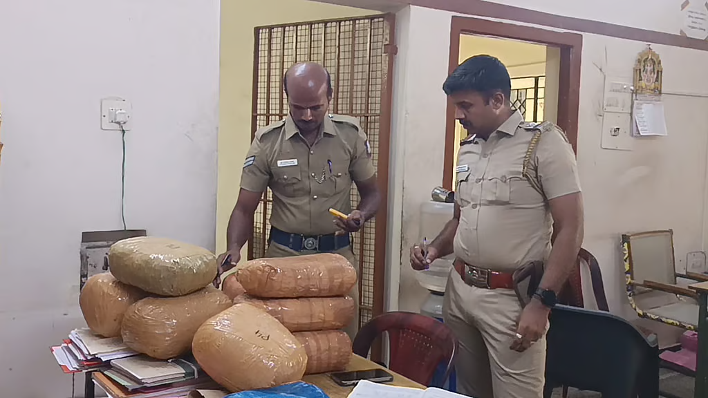மத்தியப்பிரதேச மாநிலம் நர்மதாபுரத்தைச் சேர்ந்த கிருஷ்ணா அம்ரோல், கடந்த சில மாதங்களாக, திருப்பூரில் தங்கி கட்டட வேலை செய்து வந்தார். இந்நிலையில், சொந்த ஊருக்குச் சென்ற அவர், மீண்டும் திருப்பூர் வந்துள்ளார். அப்போது, விஜயவாடா சென்று அங்கிருந்து இரண்டு பெரிய பைகளை கொண்டு வந்துள்ளார்.