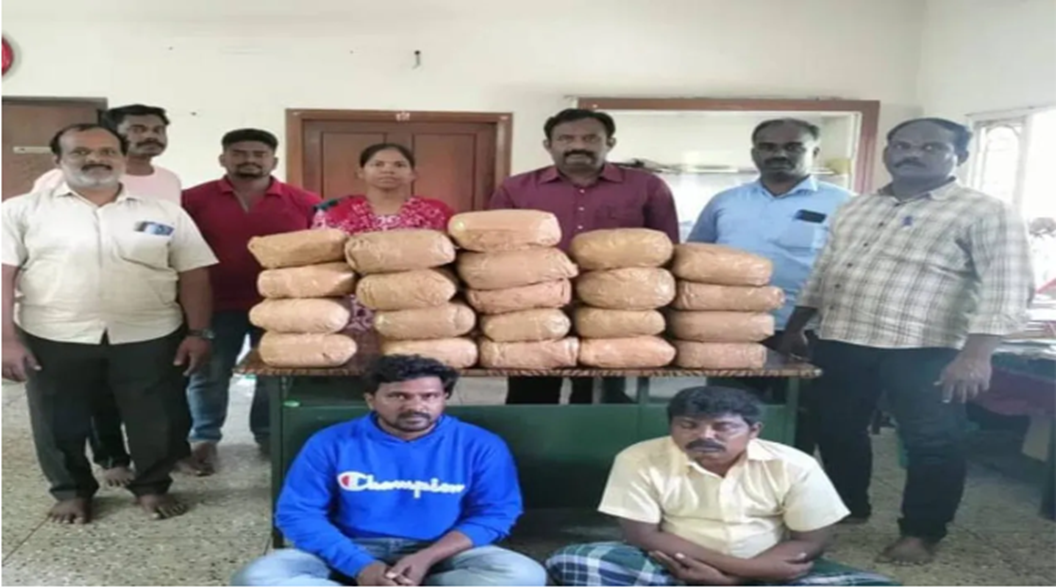 அப்போது ஆந்திராவில் இருந்து நாமக்கல் வழியாக சென்னை நோக்கி வேகமாக வந்த ஆல்டோ மடக்கி சோதனை நடத்தினர். அப்போது காரில் இருந்தவர்கள் முன்னுக்கு பின் முரணான தகவல்களை அளித்ததால், போலீசார் காரை சோதனையிட்டதில் பண்டல் பண்டலாக கஞ்சாவை மறைத்து கடத்தி வந்தது கண்டுபிடிக்கப்பட்டது.