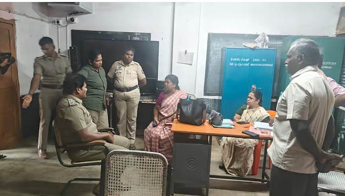 மேலும், இந்த சம்பவம் அந்த பகுதி மக்களை வேதனைக்கு ஆளாக்கியது. பின்னர், இதுபற்றி தகவல் அறிந்த வட்டார கல்வி அலுவலர் லதா, மணப்பாறை டி.எஸ்.பி கதிரவன், மணப்பாறை மகளிர் காவல் நிலைய ஆய்வாளர் கவிதா மற்றும் அதிகாரிகள் நேரில் பள்ளிக்கு சென்று விசாரணை நடத்தினர்.