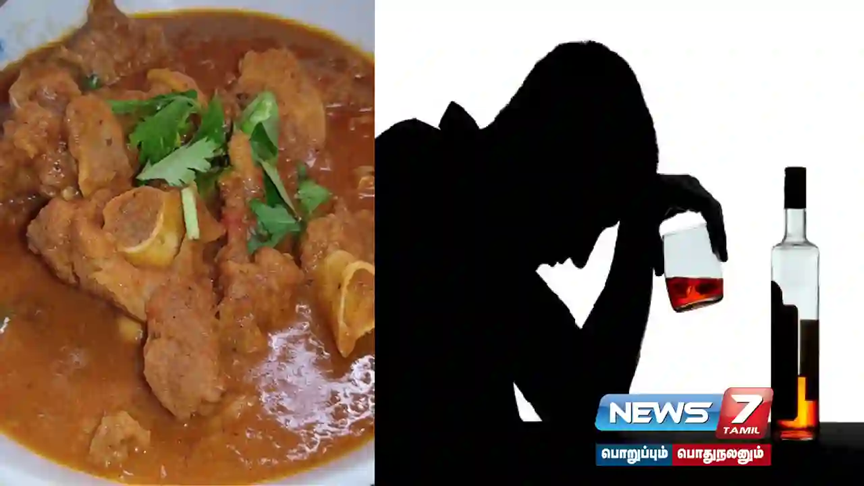 இதையடுத்து உயிரிழந்த கோவிந்தனின் உடலை பிரேத பரிசோதனைக்கு அனுப்பி வைத்தனர். இது குறித்து தகவல் அறிந்து வந்த திருப்பத்தூர் கிராமிய போலீசார் வழக்கு பதிவு செய்து விசாரணை மேற்கொண்டு வருகின்றனர். மது குடித்துக் கொண்டு ஆட்டுக்கறி சாப்பிட்டவர் மயங்கி விழுந்த உயிரிழந்த