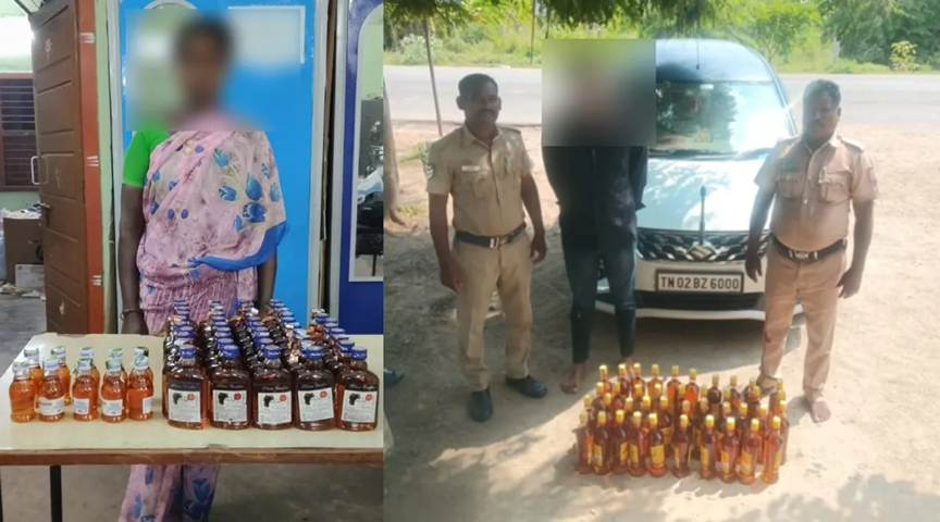 பிரத்தியேக ஆடை வடிவமைத்து புதுச்சேரி மதுபானங்களை கடத்திய பெண் ஒருவரையும், காரின் மூலம் 40 மதுபான பாட்டில்களை கடத்திய இளைஞர் ஒருவரையும் விழுப்புரம் போலீசார் கைது செய்தனர்.