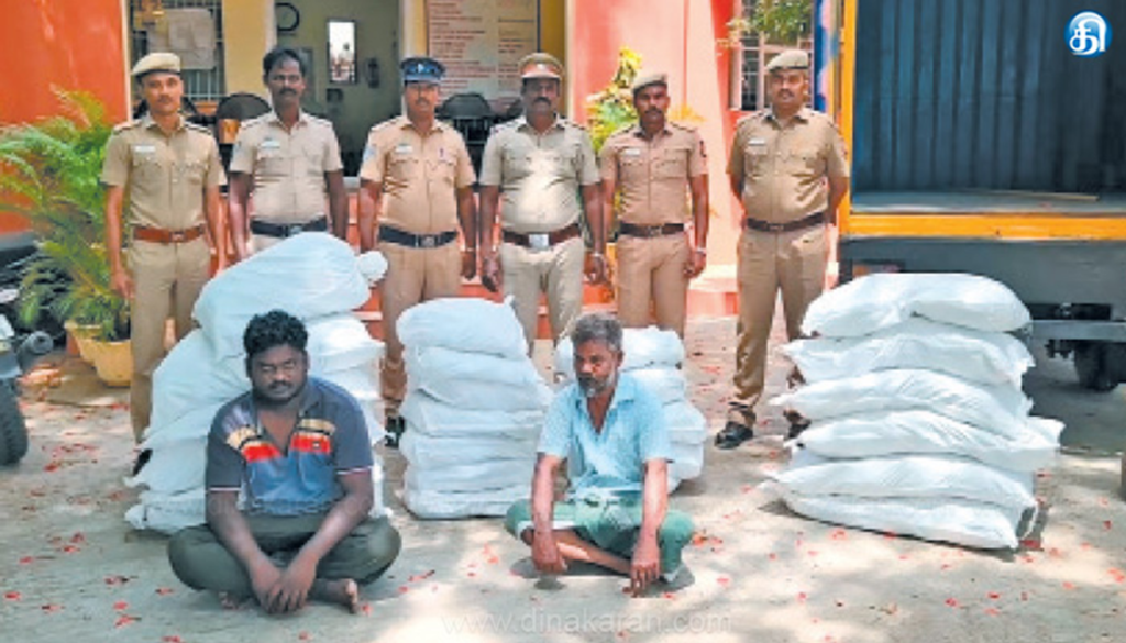 அவர்கள் வேலூரை சேர்ந்த சரவணன் (55), ஆம்பூரை சேர்ந்த விக்னேஷ் (30) என்பதும் இருவரும் கர்நாடக மாநிலம் பெங்களூருவில் இருந்து அவற்றை கடத்தி வந்ததும் தெரியவந்தது. இதையடுத்து அவற்றை போலீசார் பறிமுதல் செய்து இருவரையும் கைது செய்தனர்.