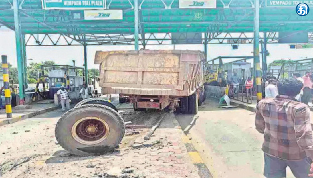 திருமலை : ஆந்திர மாநிலம் விசாகப்பட்டினத்திலிருந்து காக்கிநாடா நோக்கி லாரி ஒன்று புறப்பட்டது. வேம்பாடு நெடுஞ்சாலை டோல்கேட் அருகே வந்தபோது, கட்டுப்பாட்டை இழந்த லாரி டோல்கேட் டிக்கெட் கவுன்டர் மீது மோதியது. தொடர்ந்து லாரி நிற்காமல் அடுத்த கவுன்டர் மீதும் மோதியது. இந்த விபத்தில் கவுன்டர்கள் சேதமானது.