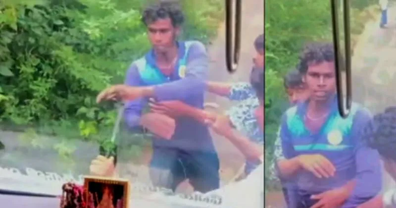 இதனால் பேருந்தின் உள்ளே அமர்ந்திருந்த மாணவர்கள் பயத்தில் அலறினர்.