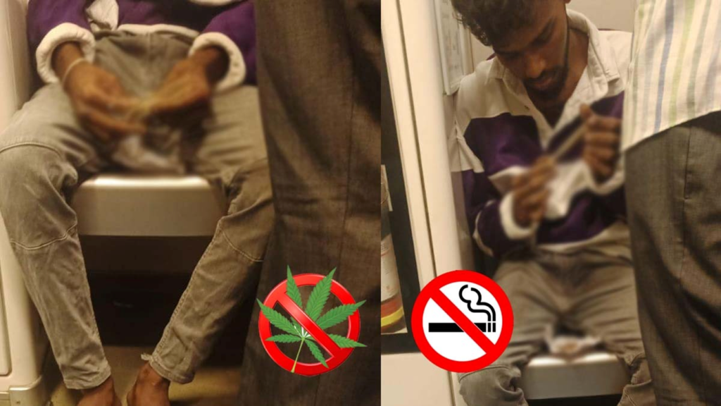 பரபரப்பாக இயங்கும் சென்னையில் மக்கள் அதிகம் கூடும் மெட்ரோ ரயிலில் கஞ்சா பயன்படுத்திய இளைஞர்.